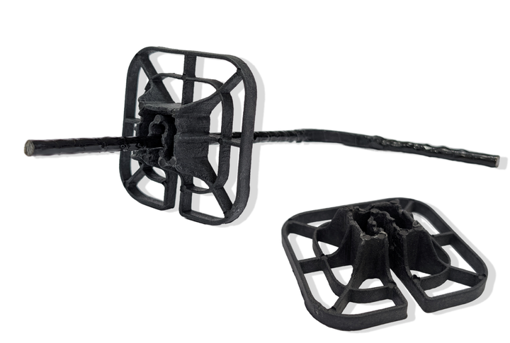 Применение аналогично стульчику. Главной отличительной чертой является возможность работы с несколькими уровнями защитного слоя, для этого достаточно повернуть фиксатор. Высота защитного слоя 35-80мм. Может быть использован с арматурой 4-32мм. Может использоваться с фиксатором «подставка под сыпучий грунт»