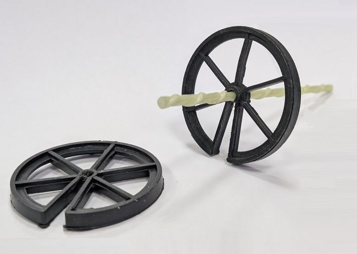 Применяется при кладочных работах для крепления утеплителя и создания вен.зазора. Получил широкое распространение ввиду своей низкой стоимости при сохранении прочностных характеристик. Имеет диаметр 65мм и толщину 6мм. На практике для формирования равномерного вен.зазора строители зачастую защелкивают на одну гибкую 3 фиксатора вплотную друг к другу тем самым сохраняя одинаковое расстояние от плиты утеплителя до внешнего облицовочного слоя по всей площади стены.